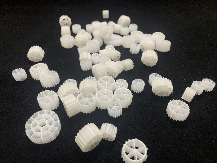 Gęstość nośnika jest bliższa wodzie i wynosi 0,96-0,98 g / cm3 przed utworzeniem biofilmu.Około 1,0g / cm3 po zawieszeniu biofilmu, co sprawia, że łatwo miesza się z przepływającą wodą w reaktorze.